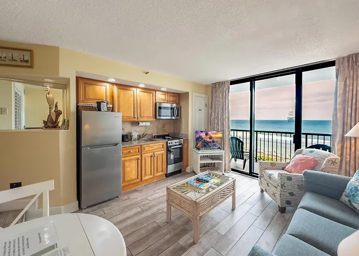 Featuring an indoor swimming pool for guests' relaxation, Stunning Ocean Views! 1Br For 6 Guests! Beach Colony 603 Myrtle Beach villa is located nearly a 10-minute drive from the Captain Hooks Adventure Golf. Featuring ocean views, the beachfront holiday home invites guests to visit the WonderWorks Myrtle Beach, located 4.2 km away.